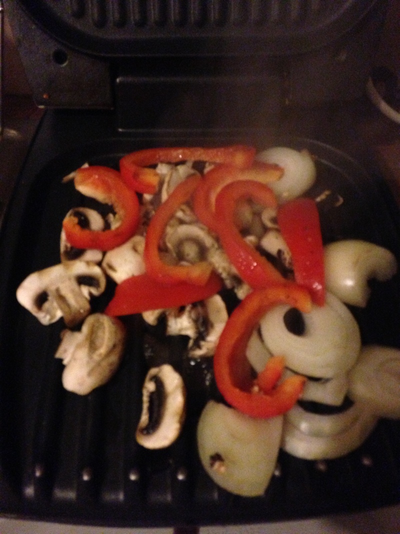 You just slice up the vegetables and put them straight onto the grill – in my case a George Foreman – and let them cook for a few minutes.